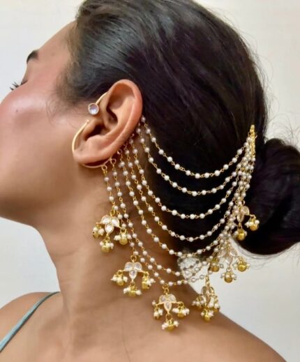 MJ Pearl Cascade Ear Cuff Hair Chain – Royal Bridal Gold & Pearl Jewelry