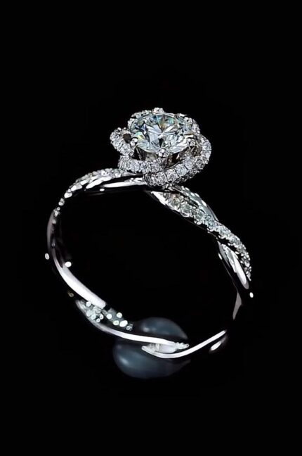 MJ Marukh’s jewels Elegant Twisted Band Halo Crystal Ring – Luxury Silver Tone Engagement Ring for Women