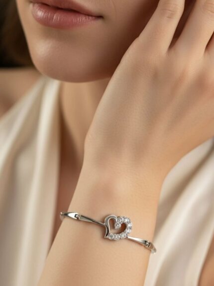 MJ Marukh’s jewels Diamond Heart Open Cuff Bracelet in White Gold