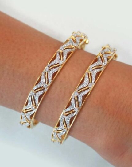 MJ Elegant Diamond Wave Bangles – Contemporary Dual-Tone Luxury Pair