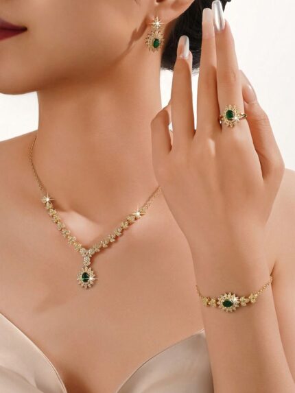 MJ Emerald Radiance Halo Jewelry Set – Luxury Gold Bridal Collection