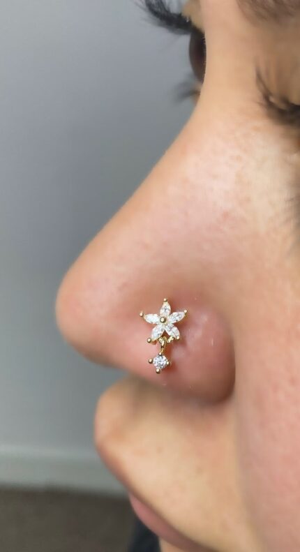 MJ Marukh’s jewels – Floral Dangle Nose Stud | Elegant Flower Nose Pin with Sparkling Drop