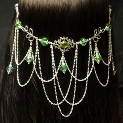 MJ Emerald Vine Silver Hair Chain – Elvish Crystal Back Head Jewelry