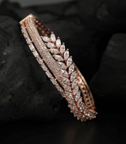 MJ Regal Leaf Marquise Crystal Cuff Bracelet – Rose Gold Finish