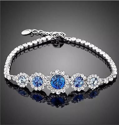 MJ Marukh’s jewels Blue Sapphire Halo Tennis Bracelet in White Gold Finish