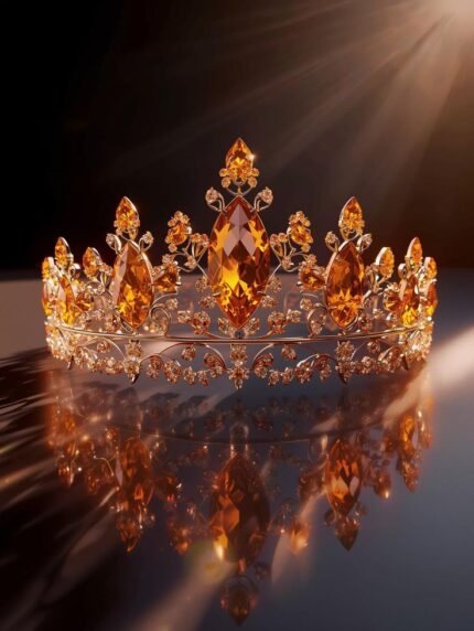 MJ Golden Citrine Crystal Royal Tiara – Luxury Queen Crown & Bridal Headpiece