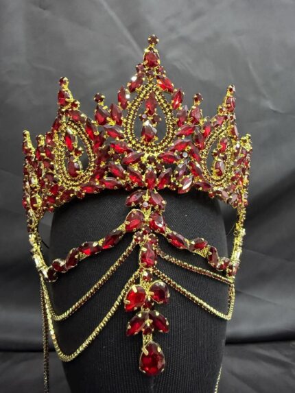 MJ Royal Ruby Empress Crown – Gold-Plated Crystal Bridal & Couture Headpiece