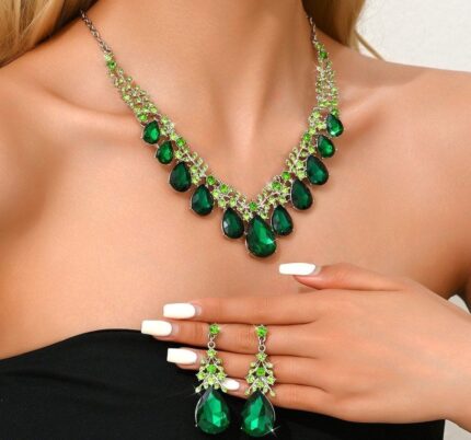 MJ Marukh’s jewels Luxury Emerald Green Teardrop Bridal Necklace Set