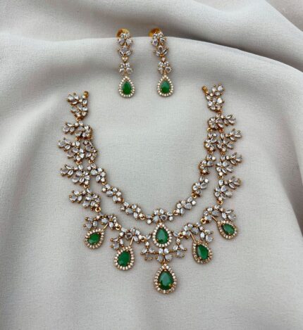 Emerald Green Teardrop Floral Diamond Necklace Set – MJ Marukh’s jewels