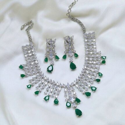 MJ Emerald Blossom American Diamond Drop Necklace Set