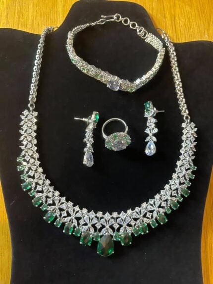 Expertly crafted with premium finishing and fine detailing, this necklace set offers exceptional sparkle and long-lasting beauty. Whether paired with a bridal lehenga, formal gown, or festive attire, it brings sophistication and feminine elegance to your ensemble.
