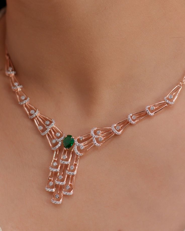 Home Neck Jewellery Necklaces Emerald & Rose Gold Necklace