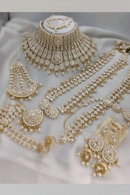 From sparkling necklaces and statement earrings to elegant bangles and rings, each piece is designed to make every bride shine with grace and sophistication. Available in Gold, White Gold, Silver, and customizable with diamonds or natural gemstones, our jewelry brings timeless beauty to your wedding look.