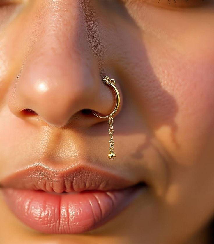 Minimal Chain Drop Hoop Nose Ring – Modern Everyday Elegance