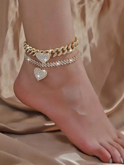 Step into elegance with the D&J 2pcs Rhinestone Charm Anklet Set, a perfect accessory to elevate your style. Designed in luxurious yellow gold tone, these anklets are adorned with sparkling rhinestones and delicate charms, creating a glamorous yet versatile look. Perfect for casual outings, parties, beach days, or special occasions, this set adds a radiant touch to every outfit.