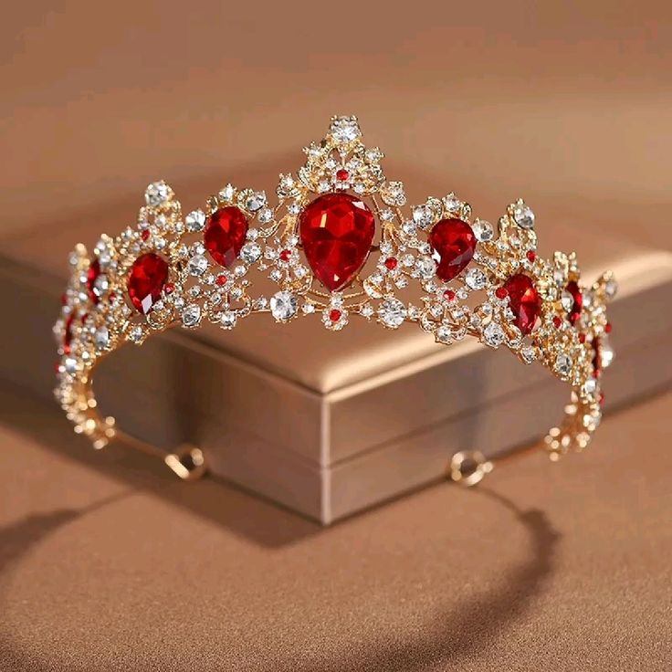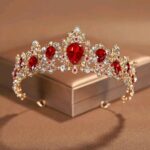 Unleash timeless royalty with the D&J Crimson Royale Gold Tiara, a breathtaking crown designed for grand celebrations and unforgettable entrances. Featuring striking pear-shaped crimson ruby-inspired stones, this tiara is masterfully set in a rich gold-tone framework and illuminated with brilliant diamond-like accents.