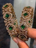 Elevate your jewelry collection with these stunning Emerald Green Luxury Bangles from D&J Diamonds & Jewels. Designed to capture timeless elegance, these gold-plated kadas feature radiant emerald-green square-cut stones beautifully framed with shimmering high-quality zircon detailing.