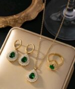 The vivid green stones symbolize grace and prosperity, while the shimmering crystal accents create exceptional brilliance from every angle. Perfect for weddings, engagements, festive celebrations, formal dinners, and special occasions, this set offers a flawless balance of glamour and refinement.