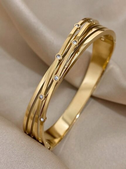 MJ Intertwined Radiance Gold Crystal Cuff Bracelet for Women