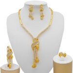Experience royal elegance with the D&J Diamonds & Jewels Dubai Gold Color Bridal Jewelry Set, inspired by luxurious Middle Eastern and traditional wedding designs. This exquisite set reflects the rich glamour often associated with jewelry trends from Dubai, known worldwide for its opulent gold styles.