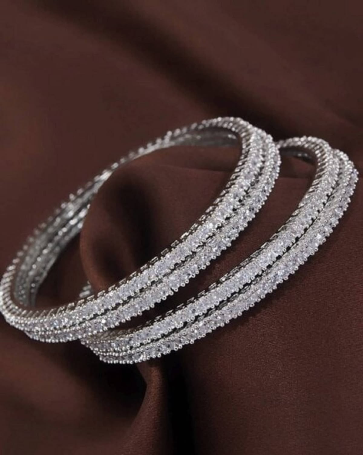 MJ Marukh's jewels Silver Crystal Studded Designer Bangles Set for Women – Luxury Bridal & Party Wear ₨ 4,000