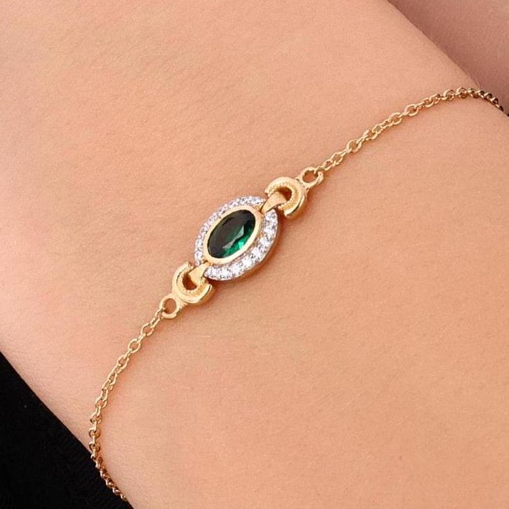 The rich green emerald symbolizes elegance and renewal, while the diamond halo enhances its depth and brilliance, creating a luminous focal point. The fine gold chain adds a graceful, lightweight feel, making this bracelet ideal for both everyday sophistication and special occasions.