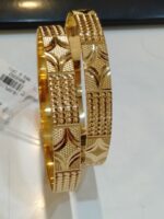 The alternating sections of shimmering bead-like detailing and engraved patterns create a rich, dimensional look that captures light beautifully. Crafted with a premium gold-plated finish, these bangles offer a luxurious shine while remaining lightweight and comfortable for extended wear.