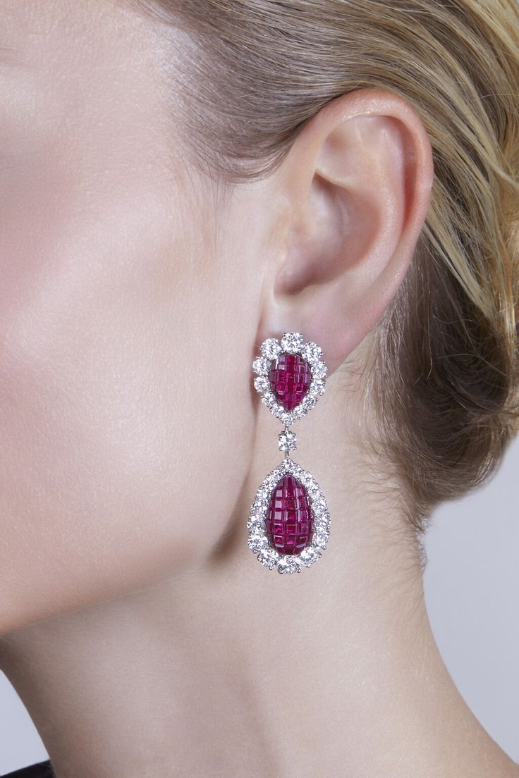 Pair of ‘Mystery-Set’ Ruby & Diamond Pendant-Earring | D&J Fine Jewels