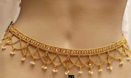 Designed for the bold and glamorous, the intricate pearl detailing gracefully frames the neckline, waist, and hips, creating a couture-inspired look that blends sensuality with sophistication. The sparkling fabric catches the light beautifully, while the draped pearl strands add fluid movement and luxury to every step.